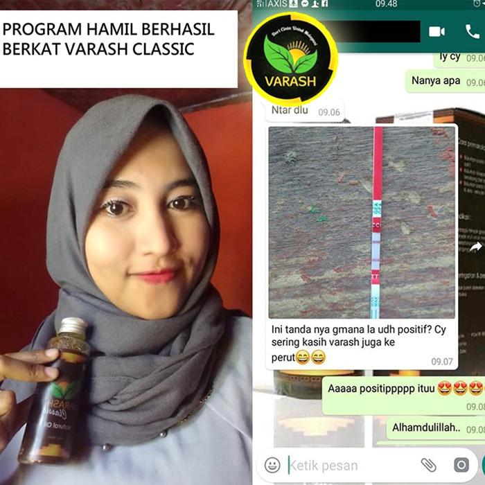 Asal mula saya chat di Wa, Lalu kami telponan untuk menanyakan seputar Varash. Awal saya membeli minyak varash pada bulan Agustus 2018, saya mencoba ikhtiar Promil Melalui Varash dan memakai sesuai anjuran dan aturan pakai minyak varash. Saya rutin membalurkannya disekitar perut, panggul dan juga rutin membalurkan di area kemaluan. Dan alhamdulillah pada bulan Mei 2019 tepatnya usia pernikahan kami 1 tahun 4 bulan saya Positif hamil. Saya bersyukur telah diperkenalkan dengan minyak varash oleh teman saya @olaTerimakasih Ya Allah, Terimakasih Olla Varash sudah perkenalkan saya dengan mnyak Varash.Semoga selalu memberikan kesembuhan disegala keluhan. Amin…